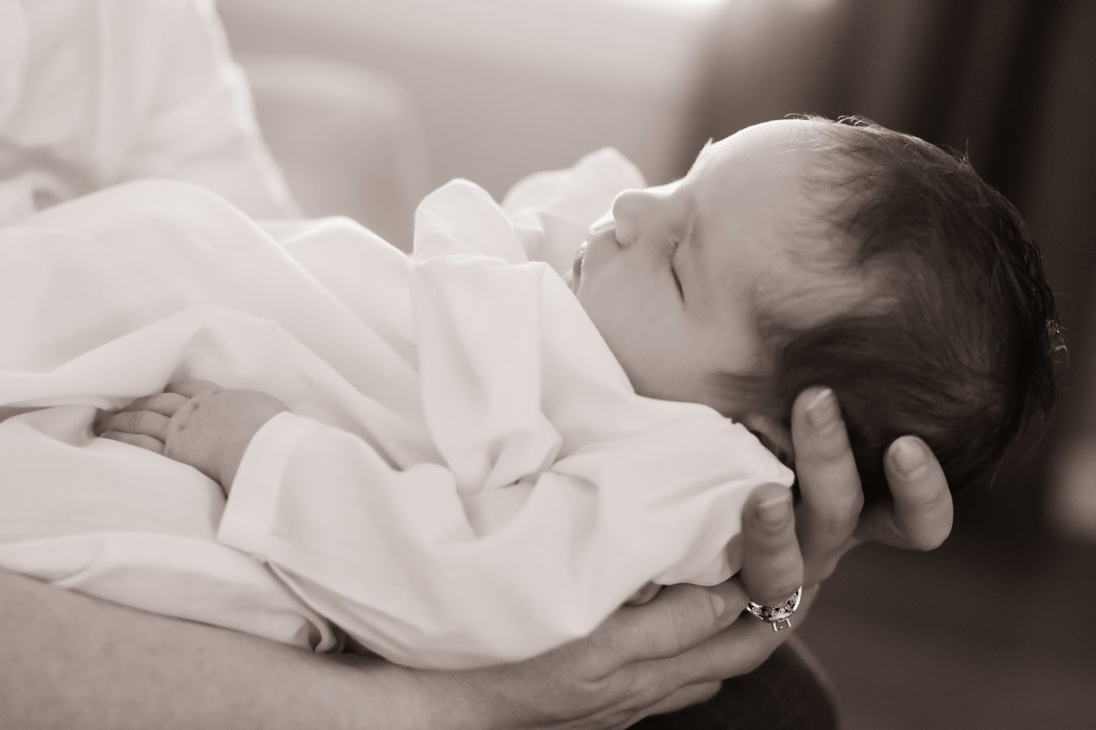 We've had a second busy week! Rowe rang in her second week by finding her voice and using it from midnight until 5 a.m. Sunday. She had her days and nights mixed up for the first week, but this was her longest span. Thankfully that was also her turning point. Since then she has slept pretty well most nights between feedings every three hours. Her weight was up to 9 lbs. 2 ozs. on Monday and 9 lbs. 6 ozs. today.